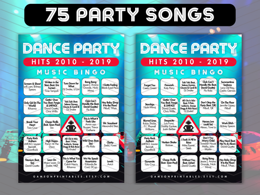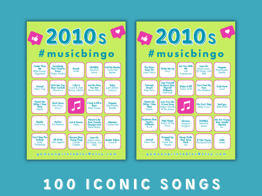 2010s Party Hits Music Bingo With Playlist | 2010s Dance Party Games | Printable Games