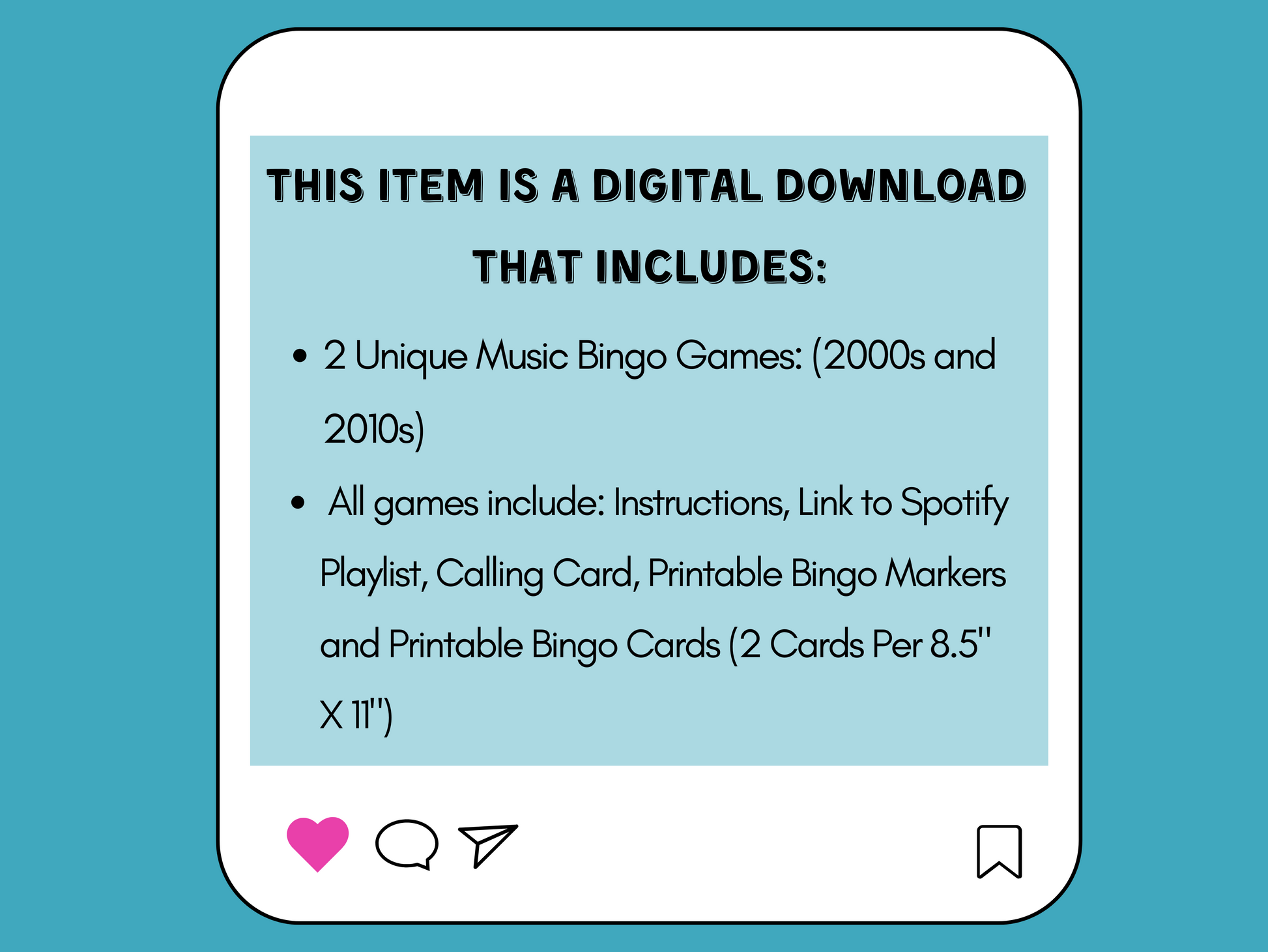 🎵 2000s and 2010s 2-Pack Music Bingo: Step back in time and groove to the hits that defined the 2000s and 2010s with our printable 2-Pack Music Bingo Games! One set features classic hits from the 2000s and another packed with the top tracks of the 2010s. Each set is equipped with its own specially curated playlist of 75 songs.